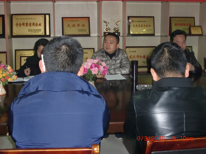 董事長(zhǎng)徐濤最后提要求,徐董要求公司每一個(gè)崗位員工都能發(fā)揮應(yīng)有的作用,人人都當(dāng)實(shí)干家,當(dāng)天工作不過(guò)夜,當(dāng)月工作提前抓,狠抓落實(shí)過(guò)程,確保目標(biāo)落地。2015年公司的總目標(biāo)是要超越2014年,在公司推行新的薪酬和績(jī)效管理制度,確保各施工項(xiàng)目安全、質(zhì)量和進(jìn)度,努力爭(zhēng)創(chuàng)質(zhì)量和安全黃鶴杯各二次;建設(shè)一支紀(jì)律嚴(yán)明,能接業(yè)務(wù)、能打勝仗的項(xiàng)目經(jīng)理隊(duì)伍,努力培育公司參入市場(chǎng)競(jìng)爭(zhēng)的能力,使公司業(yè)績(jī)、員工收入同步增長(zhǎng)。徐董并對(duì)公司各部門(mén)2015年的工作作了具體安排。