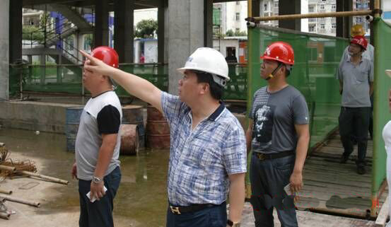 2015年6月13日周六上午,集團(tuán)公司召開完周行政工作例會后,在總經(jīng)理徐遠(yuǎn)征同志的帶領(lǐng)下,市場管理部、工程管理部、招投標(biāo)部、綜合管理部、市政分公司負(fù)責(zé)人第一站來到蔡甸大拇指廣場檢查施工現(xiàn)場文明施工整改情況,總經(jīng)理首先肯定了上次檢查整改后施工現(xiàn)場明顯改觀,隨后就進(jìn)一步完善圍擋角區(qū)、安全帽佩戴等進(jìn)一步提出了要求;第二站來到大集張堡小學(xué)施工現(xiàn)場,對墻基坑深度提出了嚴(yán)格按圖紙施工的規(guī)范要求,安排由公司工程管理部對該施工工地實(shí)行24小時(shí)嚴(yán)格監(jiān)管的做法得到了校方領(lǐng)導(dǎo)的充分肯定。