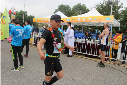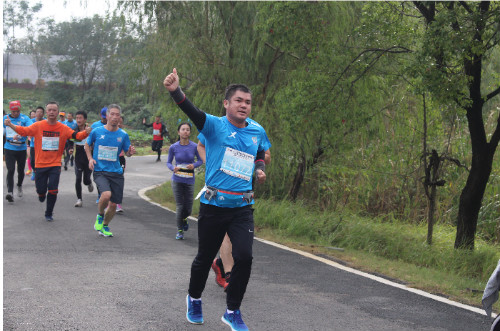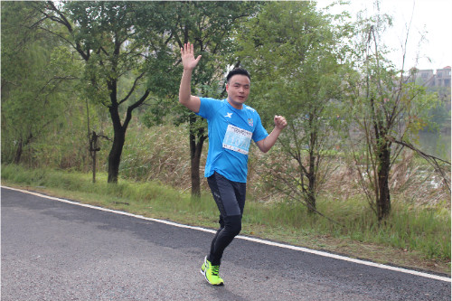 集團(tuán)公司董事長徐濤同志,賽程7公里處,步伐有力,體能充沛。