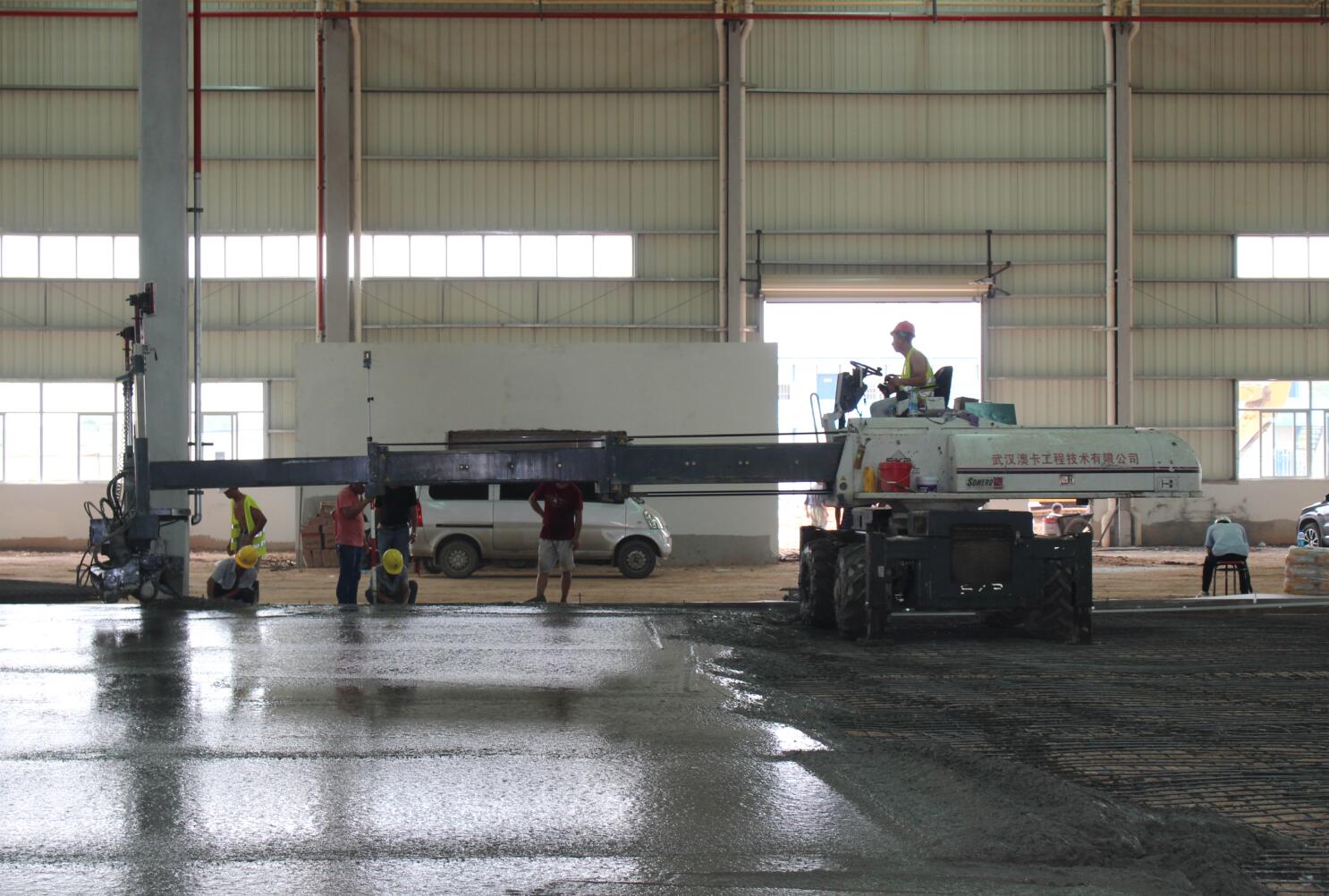 億和中建鋼構(gòu)項(xiàng)目率先在地平混凝土現(xiàn)場(chǎng)引進(jìn)激光振坪儀和磨光機(jī),不僅在效率上大大縮短了施工時(shí)間,降低了人工成本,更是在效果上達(dá)到了比人工更為精準(zhǔn)的技藝——混凝土的平整度、密實(shí)度、觀感度以及面層金剛砂顆粒分布度優(yōu)良,高低差控制在3~4mm。