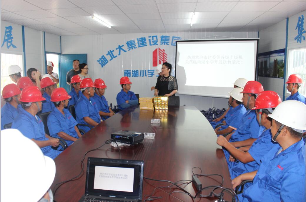 武漢市建委領(lǐng)導(dǎo)傳達(dá)了此次送教活動(dòng)的意義和目的,她說(shuō),本次活動(dòng)是在全市的2萬(wàn)多個(gè)施工項(xiàng)目中挑選出40個(gè)優(yōu)秀項(xiàng)目來(lái)開(kāi)展送教活動(dòng),不僅是對(duì)南湖小學(xué)項(xiàng)目施工成果的高度認(rèn)可和肯定,也是感謝所有一線(xiàn)施工人員對(duì)武漢城市建設(shè)做出的巨大貢獻(xiàn),希望大家能再接再厲,再創(chuàng)佳績(jī)!