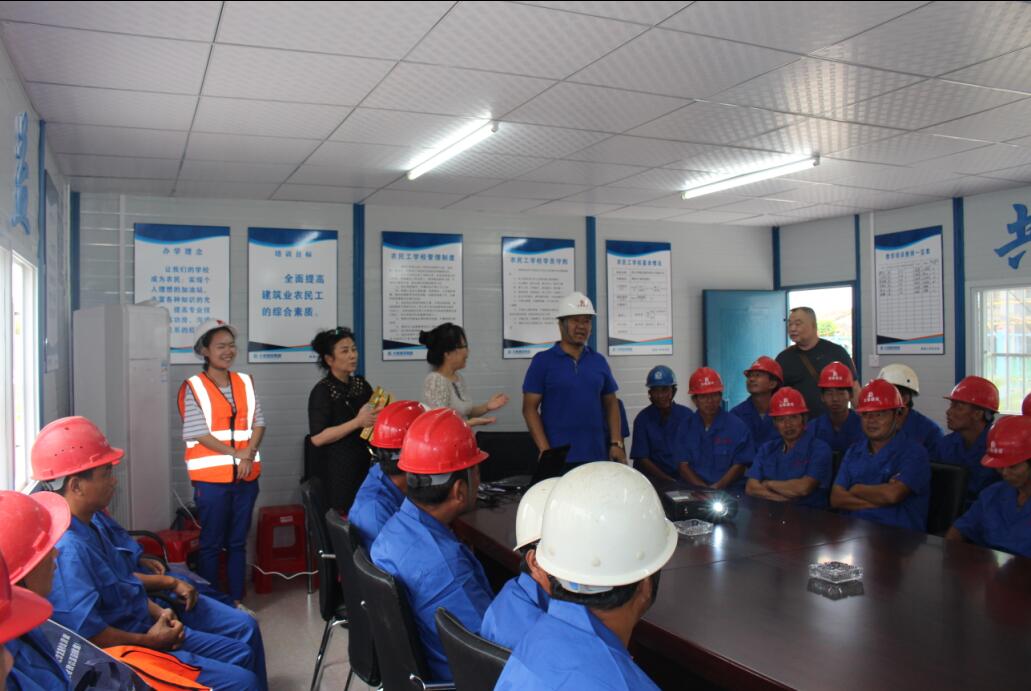 8月30日,市城建委、市人事局、市建筑工程質(zhì)量監(jiān)督站、蔡甸區(qū)監(jiān)管站一行領(lǐng)導(dǎo)蒞臨集團(tuán)南湖小學(xué)項(xiàng)目開(kāi)展送教活動(dòng),現(xiàn)場(chǎng)向工人發(fā)放保溫杯,毛巾、球鞋、收音機(jī)等生活用品和文娛用品,并通過(guò)有獎(jiǎng)問(wèn)答的形式向現(xiàn)場(chǎng)務(wù)工人員進(jìn)行了生動(dòng)有趣的安全教育和法律保險(xiǎn)知識(shí)普及,以增強(qiáng)農(nóng)民工的道德法制意識(shí)和安全文明施工意識(shí),更好地適應(yīng)現(xiàn)代化城市建設(shè)的需要!活動(dòng)現(xiàn)場(chǎng),兩位老師親切和藹,工人積極踴躍,場(chǎng)面熱烈活絡(luò)!