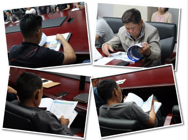 工程部為每個(gè)項(xiàng)目部發(fā)放4月份質(zhì)量安全檢查書冊,項(xiàng)目負(fù)責(zé)人認(rèn)真閱讀