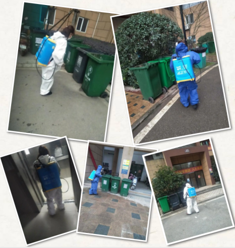 每日高頻次、全方位對小區(qū)各角落進行消毒