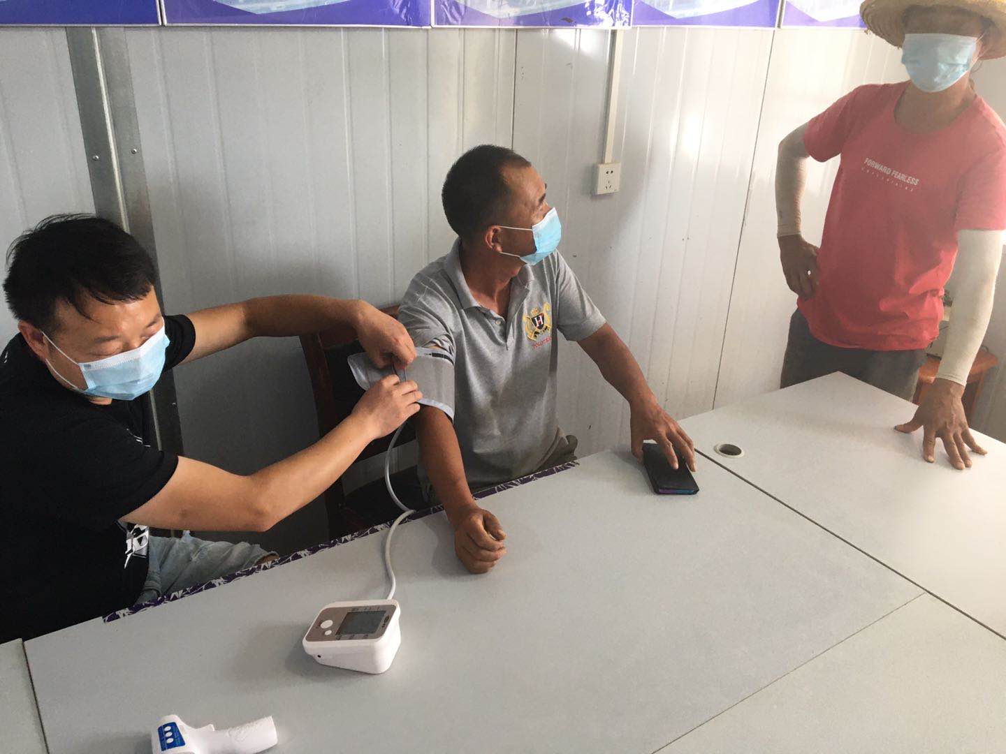為確保每一位項目人員都能參加測量,同時不影響正常工作,各項目部利用休息時間為全體人員測量血壓、脈搏及體溫。測量過后,項目部不僅將測量結(jié)果反饋給員工本人,在冊登記完善職工檔案,還會對每一位員工細心講解高血壓和低血壓的危害、如何對高血壓患者進行急救等知識,并提醒其在飲食、生活習(xí)慣等方面的注意事項,為員工健康生活、安心工作筑起一道保護墻。