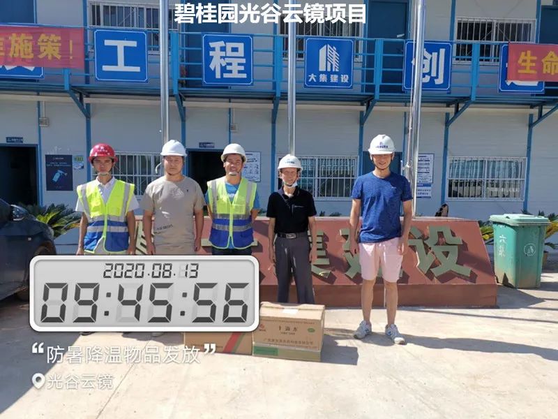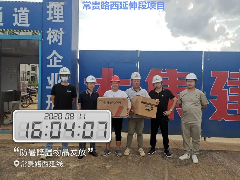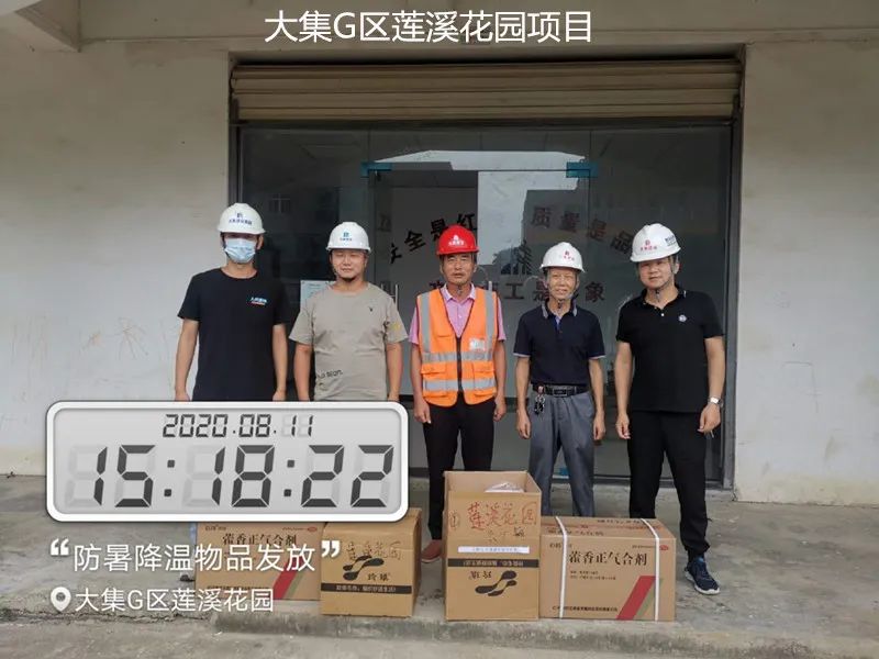 大集G區(qū)蓮溪花園項目、大集街農(nóng)村污水治理項目、大集景綠網(wǎng)紅特色小鎮(zhèn)項目、世茂龍灣47#號地塊別墅樓工程、黃星大道加油站項目、年產(chǎn)80萬套總成項目、常貴路西延伸段項目、泰禾君悅花園項目、碧桂園光谷云鏡項目……每到一處,集團工程部都會將購買好的毛巾、風油精、人丹、十滴水、藿香正氣水、蚊不叮等防暑降溫物資送到項目人員手中,并要求各項目部一定要把施工人員的身體健康放在首位,要在全力以赴抓質(zhì)量、搶進度、創(chuàng)佳績的同時,嚴格按照國家有關(guān)規(guī)定,把防暑降溫工作落實好、做到位,要根據(jù)天氣氣溫的變化,合理安排工作時間,作好安全預(yù)防措施、備足防暑降溫物質(zhì),讓員工們安全度過高溫天氣。