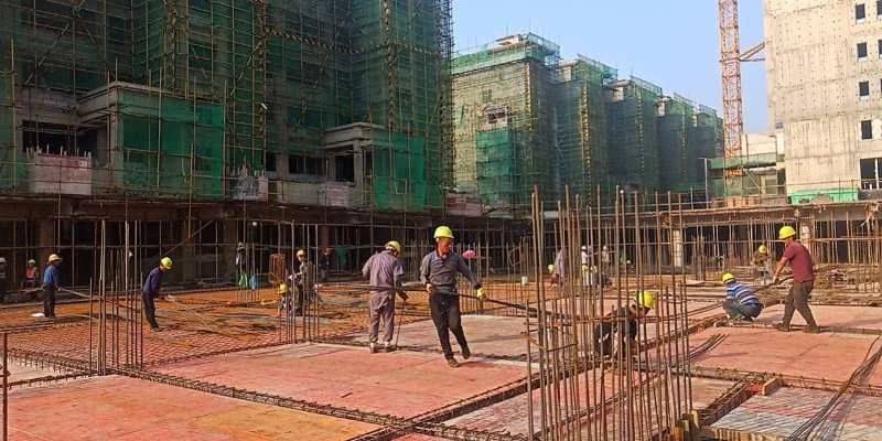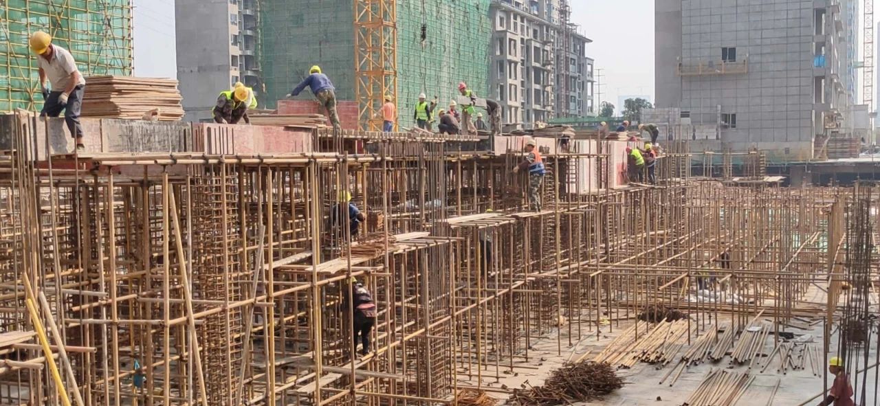 半個(gè)月的陰雨連綿之后,突然放晴的天氣讓各工地顯得格外忙碌,一大早,各施工現(xiàn)場(chǎng)已是人員繁忙,機(jī)器轟隆,一派井然有序、熱火朝天之象。
