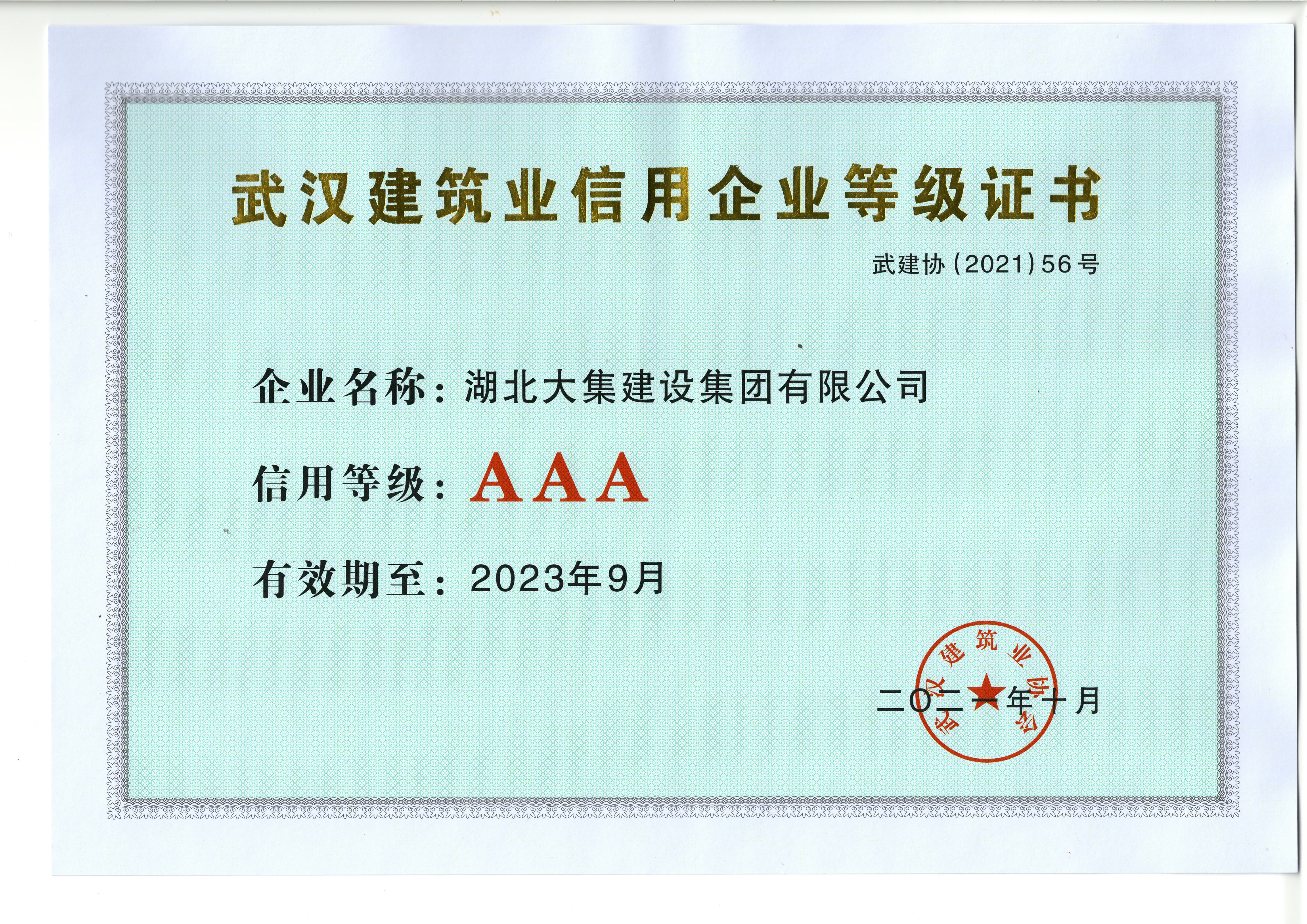 近日,武漢市建筑業(yè)協(xié)會(huì)發(fā)布2019-2020年度信用企業(yè)評(píng)價(jià)結(jié)果,湖北大集建設(shè)集團(tuán)再次獲評(píng)“武漢建筑業(yè)AAA信用企業(yè)”。