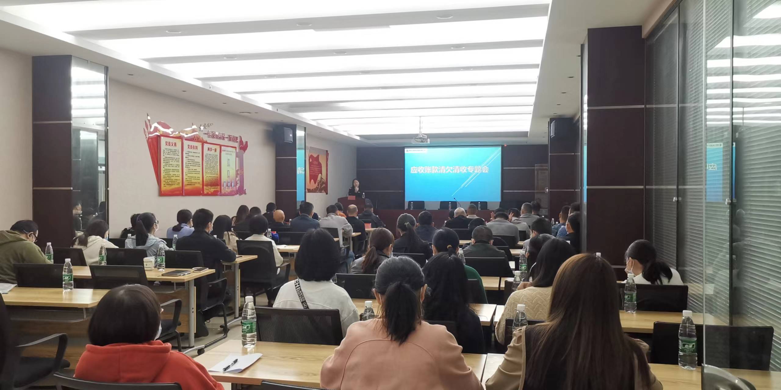 隨后,董事長助理兼財務(wù)總監(jiān)鄧雪芬總結(jié)了集團公司截至第三季度應(yīng)收賬款的情況,從企業(yè)信譽、經(jīng)濟效益、抗風險能力、資金鏈四個方面講解了壞賬風險對公司經(jīng)營的影響,并對清欠清收工作提出了五點舉措,即確認應(yīng)收賬款、建立防火墻機制、完善內(nèi)控制度、加大清欠力度、成立清欠清收領(lǐng)導(dǎo)小組,最后,鄧總監(jiān)向大家宣貫了工程款收付票據(jù)的知識,詳細講解了匯票、本票及支票的區(qū)別。