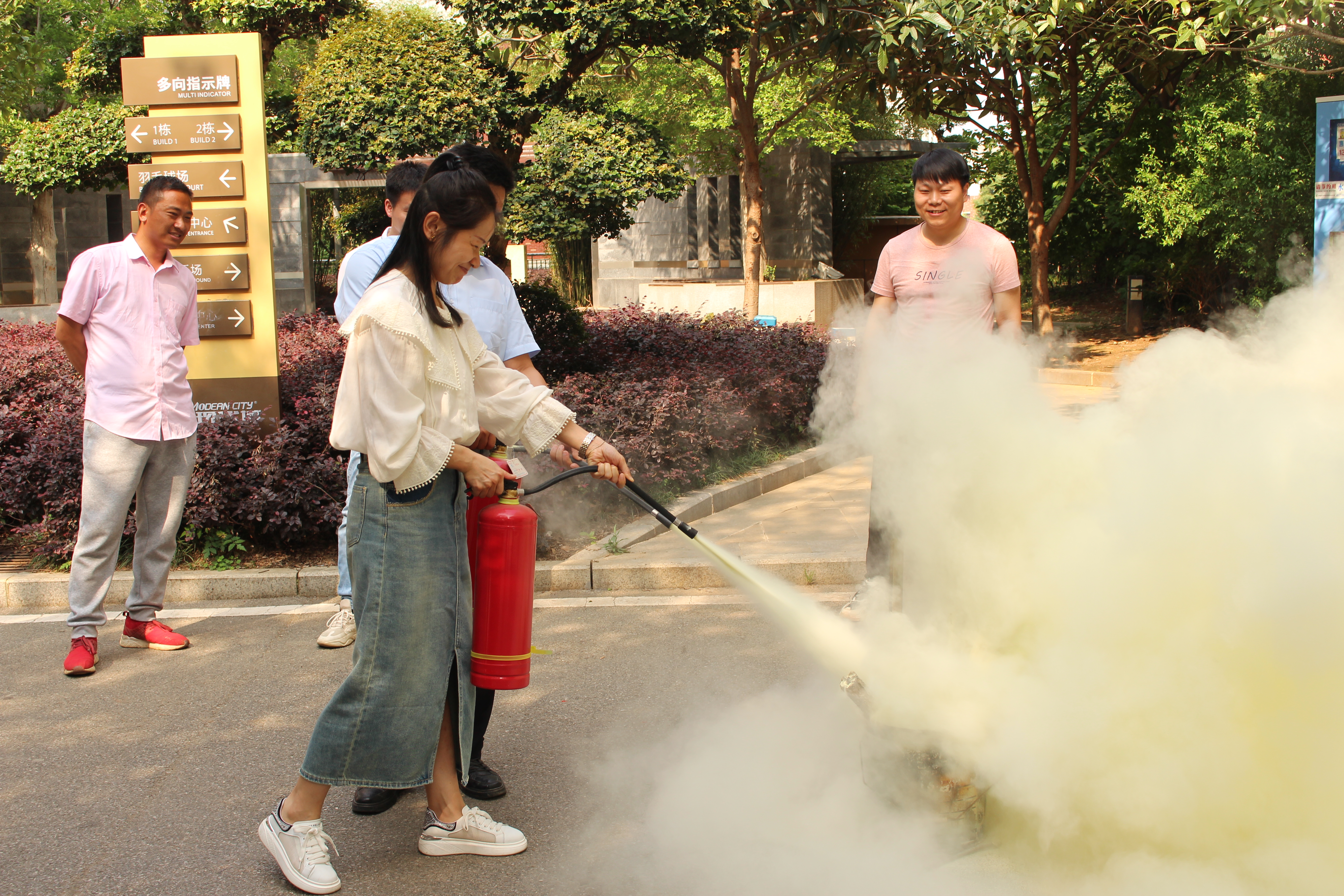 演練順利結束后,工程部安全主管秦春波還為全體員工介紹了滅火器的使用方法,并當場演示了滅火器“提、拔、握、壓”的操作流程,讓員工以實戰(zhàn)方式參與,使在場人員更直觀地掌握相關知識。