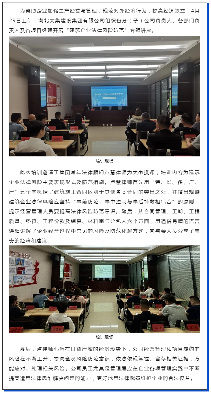 【培訓(xùn)學(xué)習(xí)】集團(tuán)公司舉辦“建筑企業(yè)法律風(fēng)險(xiǎn)防范”知識(shí)培訓(xùn)