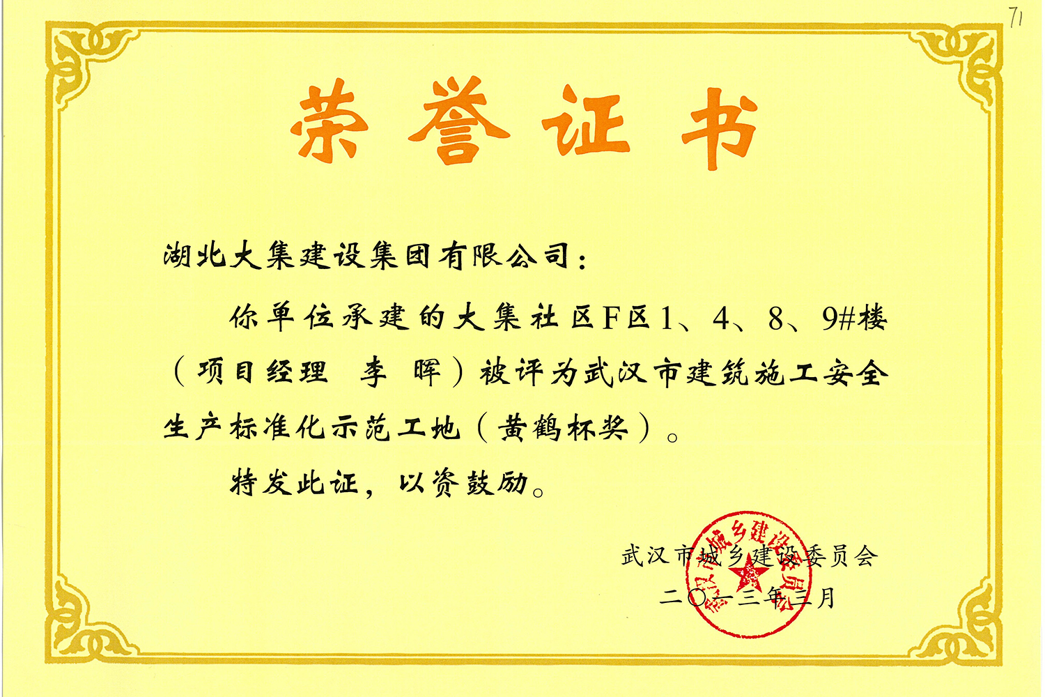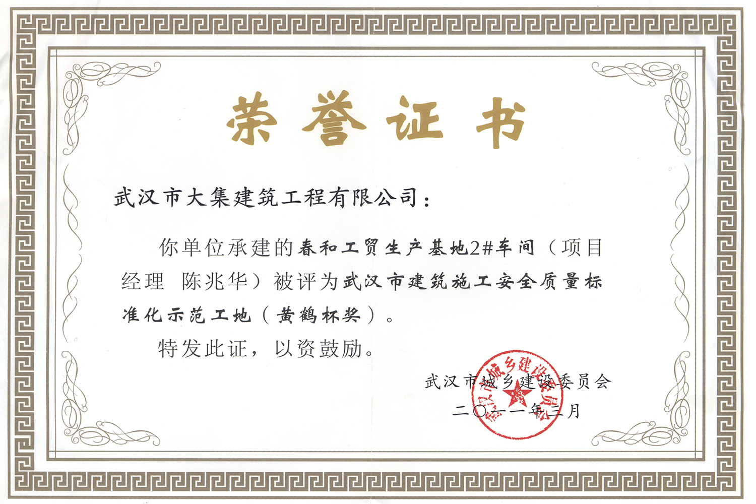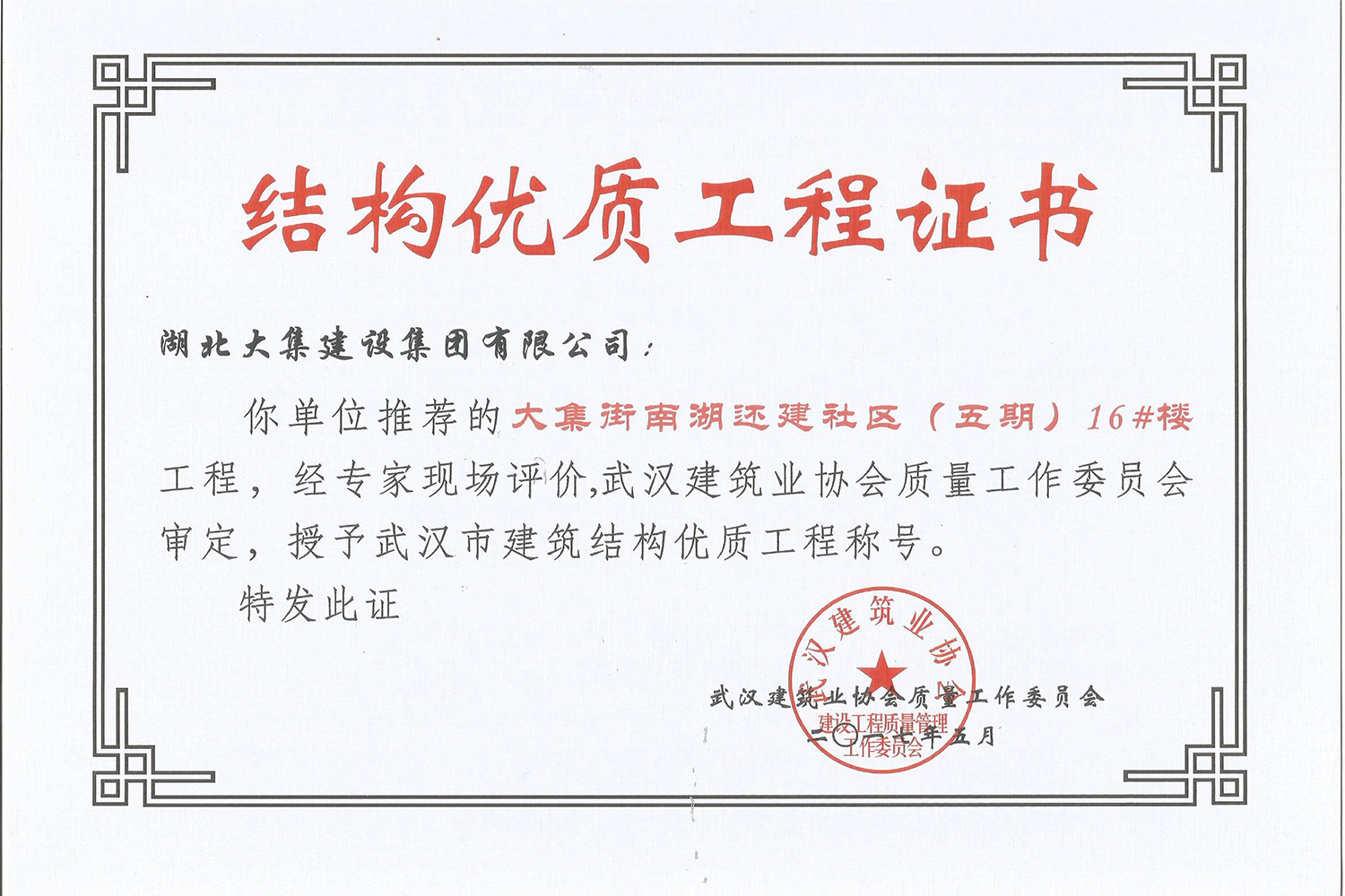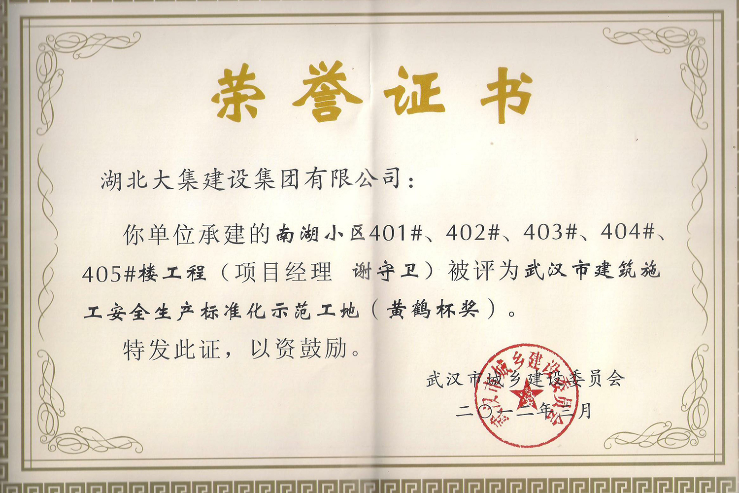 集團在發(fā)展壯大的同時,堅持守法經(jīng)營、依法納稅,堅持履行社會責任,多年來積極投身社會公益事業(yè)。省、市、區(qū)行業(yè)主管部門連續(xù)多年授予公司為“武漢地區(qū)建筑業(yè)AAA信譽企業(yè)”、“武漢地區(qū)建筑業(yè)優(yōu)秀企業(yè)”、“武漢市最具成長性民營建筑企業(yè)”、“勞動保障守法誠信A級單位”等榮譽,多次被省、市工商局評為“守合同重信用”企業(yè),多年被地方政府授予“納稅貢獻獎”。