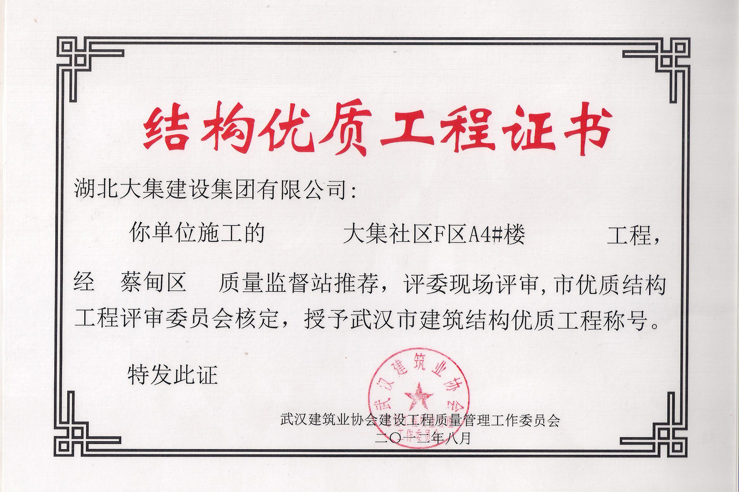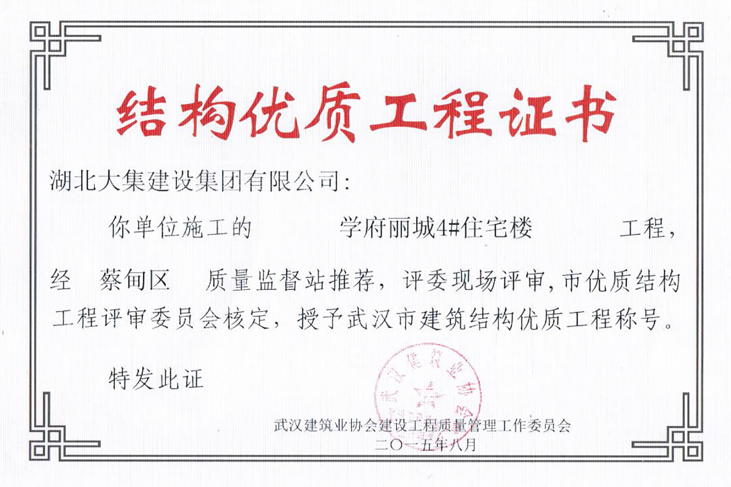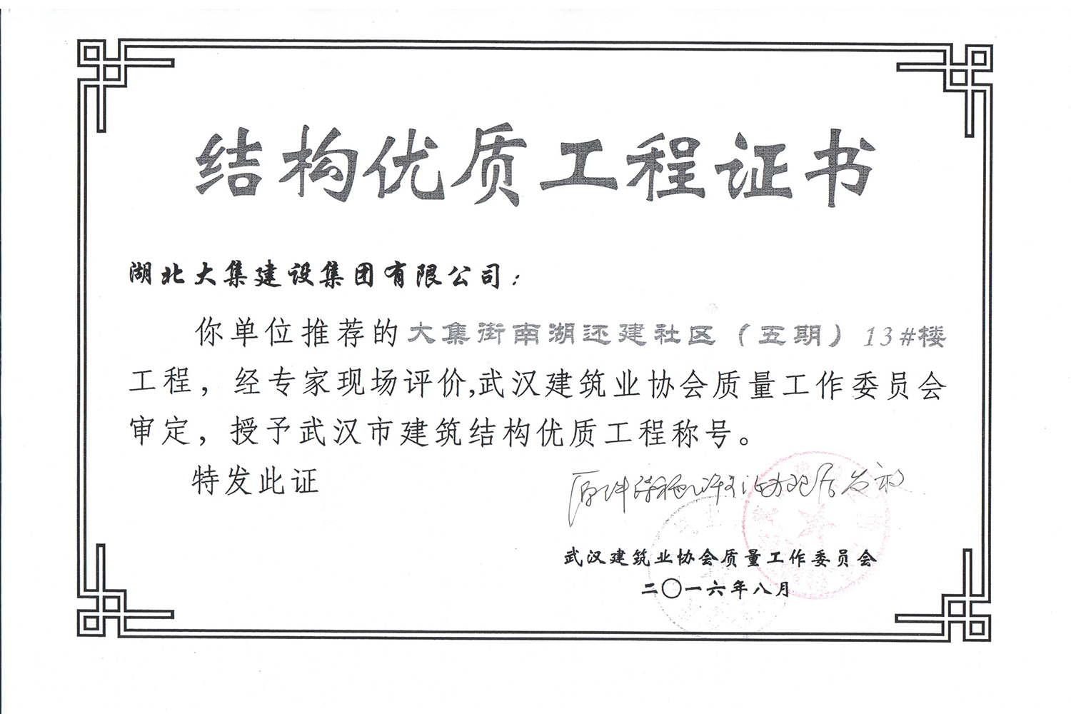 集團秉持“安全是紅線,質(zhì)量是品牌,文明施工是形象”的企業(yè)宗旨,不斷加強全面管理,注重提高自身素質(zhì),以完美的履約、優(yōu)良的質(zhì)量、滿意的服務(wù),贏得了信譽。近年來,湖北大集建設(shè)集團先后與中石化集團、中鐵上海工程局、中建八局、中鐵十二局、碧桂園集團、世茂集團、綠地集團等央企、國企、地方標志性建設(shè)單位合作,先后承建了“碧桂園知音豪庭”項目、“碧桂園光谷云境”項目、“大集G區(qū)蓮溪花園”項目等多個高層住宅小區(qū);承建了世茂龍灣46#、47#、48#地塊、花博匯桃李春風二期等多個精品高端別墅群項目;承建了“南湖中學”、“南湖小學”、“南湖幼兒園”、“博奧幼兒園”等多個教育配套項目;承建了“孝感英眾超算終端科技產(chǎn)業(yè)園”、“鴻盛華全球航空服務(wù)產(chǎn)業(yè)園”、“盟盛汽車產(chǎn)業(yè)園”、“中原印務(wù)晶毅”等多個具有特殊設(shè)備安裝需求的鋼、混結(jié)構(gòu)工業(yè)廠房項目;承建了“常福商務(wù)廣場”等大型商業(yè)綜合體;承建了后官湖綠道二期、三期,常貴路西延伸段、黃星大道等多條大型道路市政項目;自主開發(fā)了“聚盛晶尚”住宅項目,改善人居環(huán)境,引領(lǐng)綠色棲居新領(lǐng)域;所有工程嚴格執(zhí)行施工作業(yè)全過程質(zhì)量、安全管理,多個項目被省、市級監(jiān)管單位授予“省結(jié)構(gòu)優(yōu)質(zhì)”、“省安全文明施工現(xiàn)場”、“市結(jié)構(gòu)優(yōu)質(zhì)”、“市安全文明施工示范項目”、“樣板工地”等榮譽稱號。