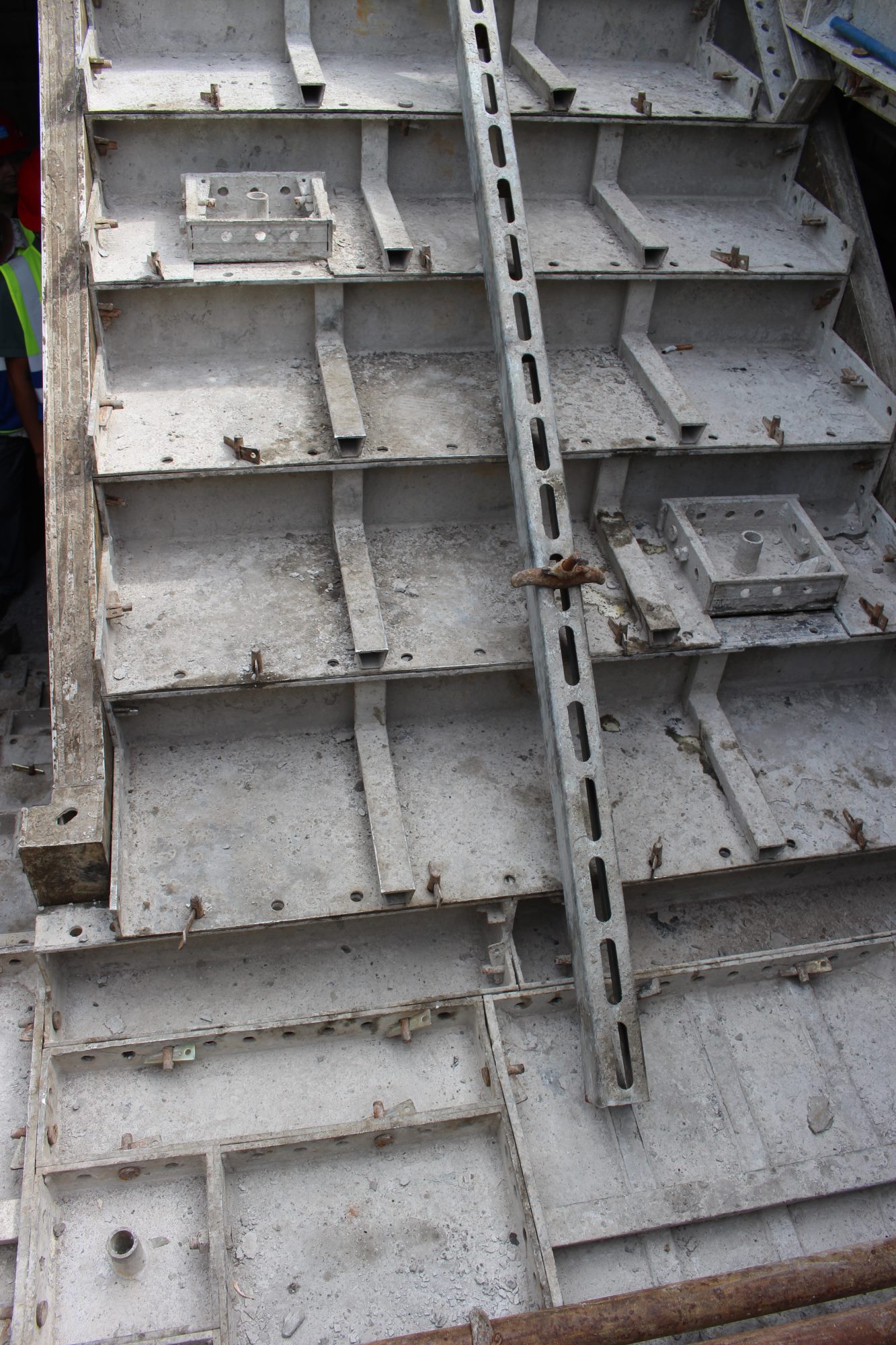 在楊泗港項(xiàng)目現(xiàn)場(chǎng),大家近距離了解了爬架的工作原理、拼裝方式以及布設(shè)情況,并仔細(xì)觀摩了鋁模的施工工藝以及支撐體系,通過(guò)與現(xiàn)場(chǎng)講解人員的溝通,對(duì)鋁模技術(shù)的應(yīng)用有了更深入的認(rèn)識(shí)。此次的觀摩學(xué)習(xí)讓各位項(xiàng)目經(jīng)理及施工員受益匪淺,對(duì)新工藝也有了更直觀、更深刻的感受和比較。
